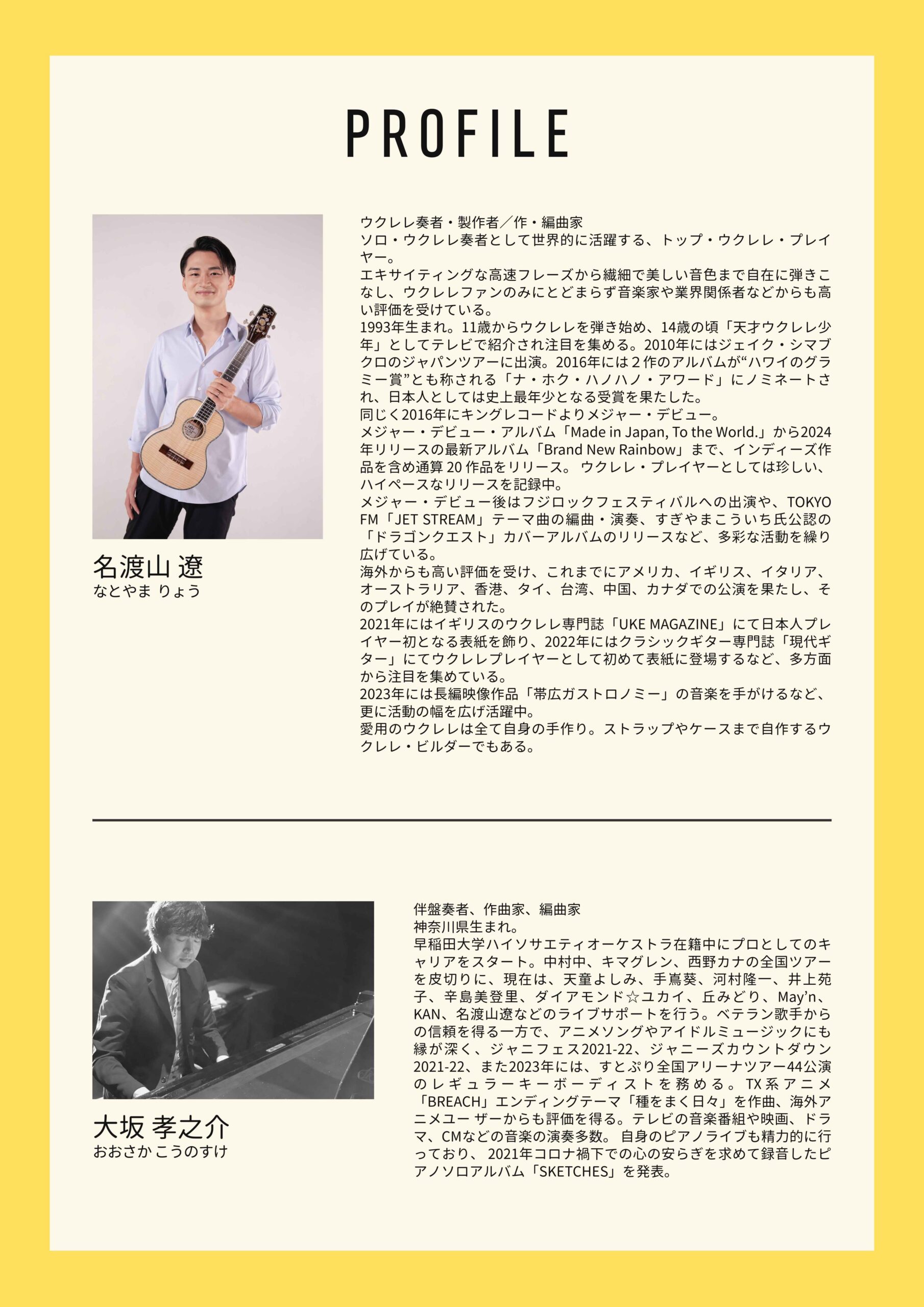 ◆出演:名渡山遼(ウクレレ)/大坂孝之介(ピアノ)